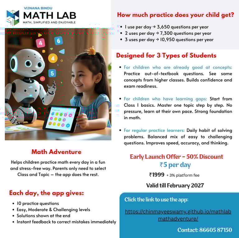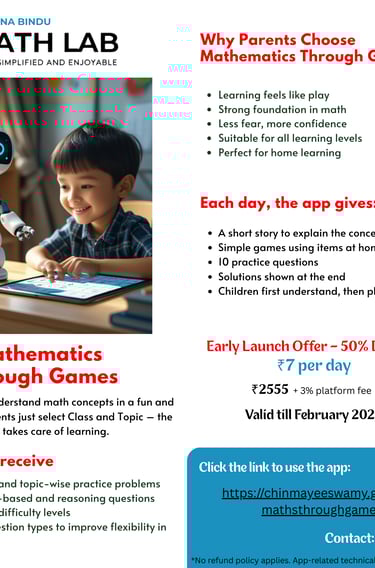 Math Lab transformed my child's learning experience! The storytelling approach made math enjoyable and relatable. Highly recommend for every parent looking to inspire their kids!